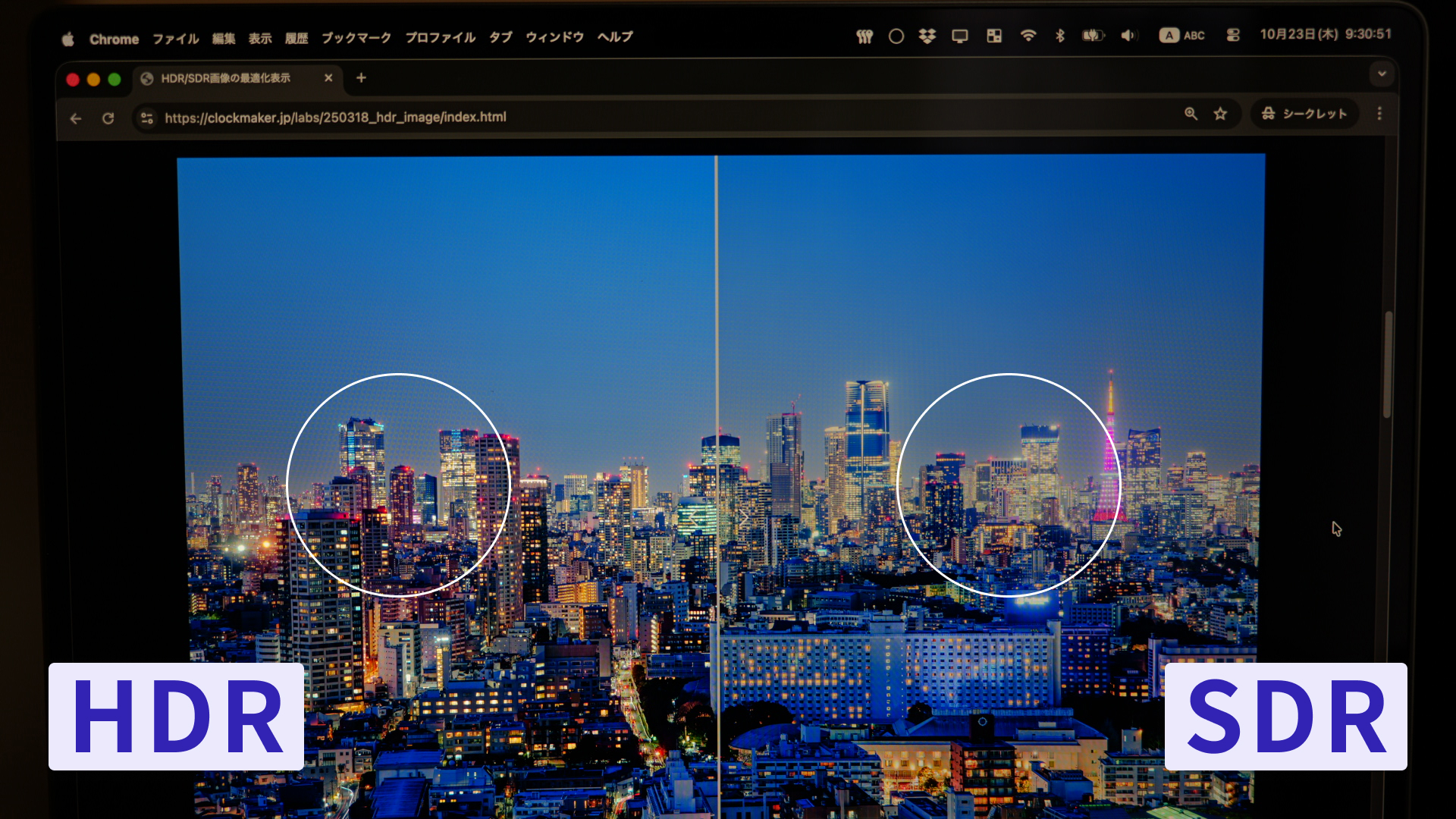 もうひとつ、SDRとHDRを比較可能なデモも用意しました。写真の間の境界線をドラッグして、SDRとHDRの表示を比較してみてください。