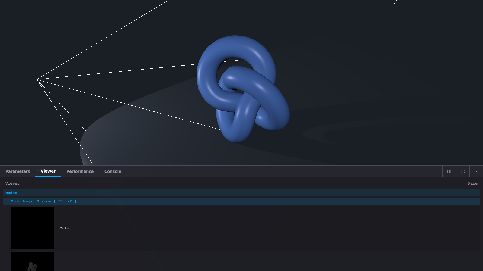 今回のサンプルでも、スポットライトのシャドウに関連する Color や Depth が Viewer に現れることがあります。